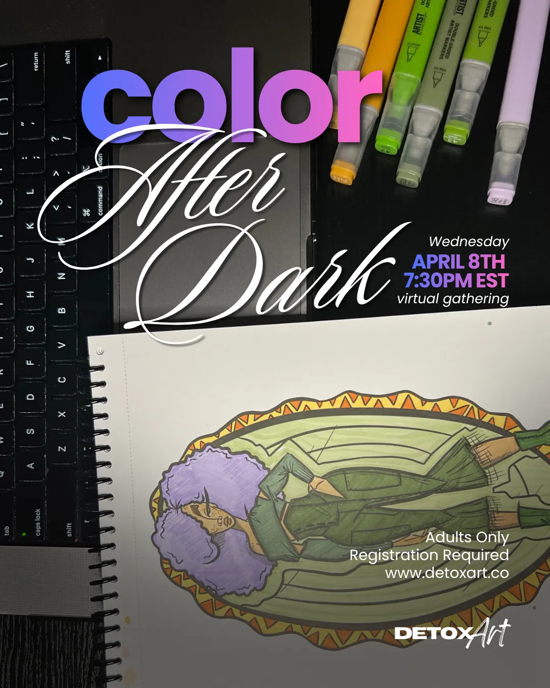 Color After Dark is a virtual space for slowing down, softening, and creating in community. This isn’t about perfection or artistic skill — it’s about being present.